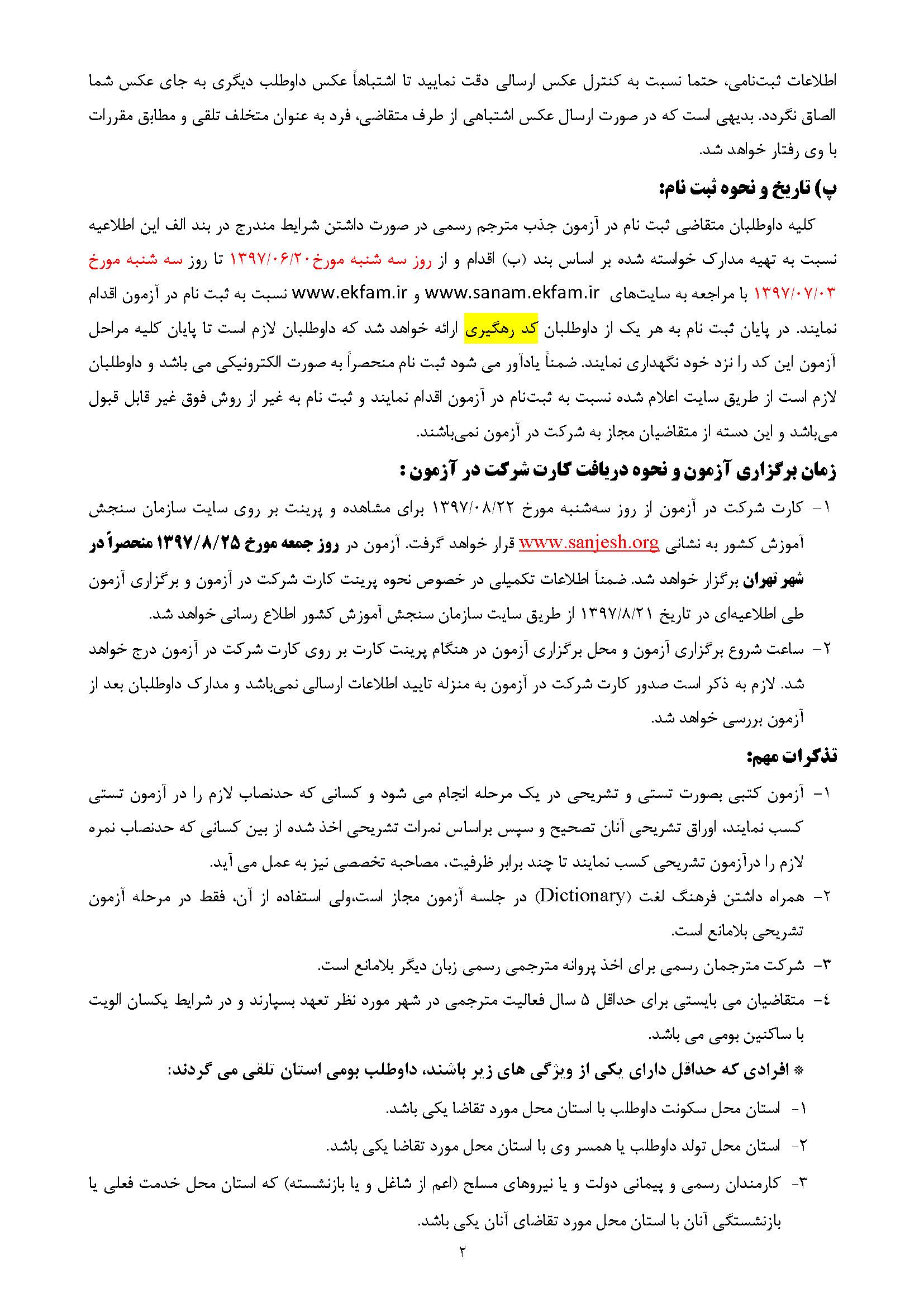متقاضیان جهت ثبت نام به وب سایت سازمان سنجش و یا وب سایت اداره کل اسناد و امور مترجمان رسمی قوه قضائیه به آدرس زیر مراجعه بفرمایید: